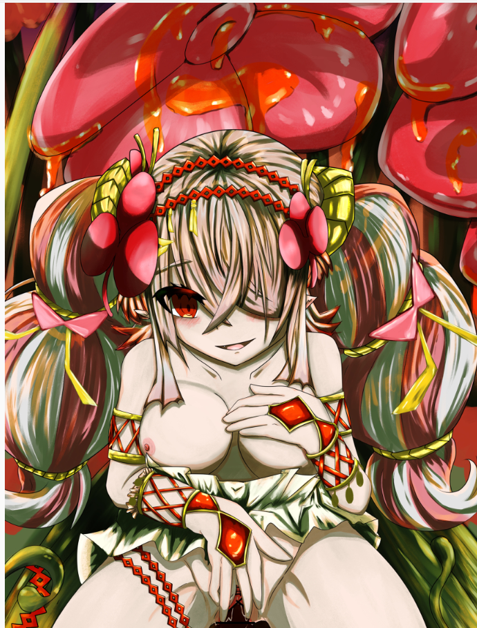 “不错嘛?来,姐姐给你一个大大的拥抱哦~”这一次,艾卡终于看到了这怪物的本体,双手张开向艾卡发出邀请的她有着粉红、蓝绿、淡棕色混合而成的蓬松超大双马尾,刘海遮住了她的右眼,只漏出了一只血红的左眼。长期躲在伪装之下的她皮肤光滑细腻无比,这或许也是长期在粘液之下浸泡的结果,因此她的两颗美乳更显得如同果实一般可口动人,没有一丝瑕疵的皮肤上流满了纤毛上分泌的液体,恐怕一旦抱上,在升天之前,离开是不可能的。且长期在密闭空间的缘故,空间里填满了发酵的香甜的淫气,刚刚那一下,粉红色的淫气像是从爆炸的气球里逃出来的一样,扇的艾卡的身体都有些发软。