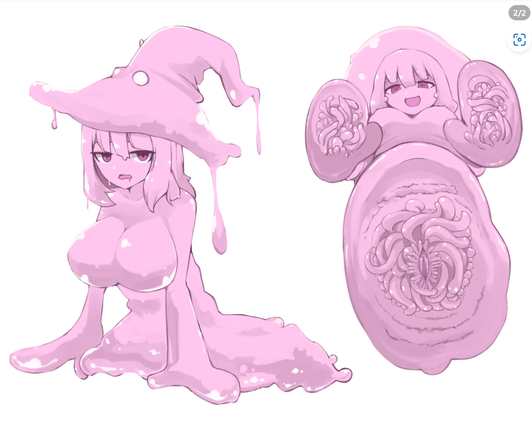 看见艾卡彻底没入水池的爱莉并不急着榨取,她默默地退了出去。其他魔物娘见爱莉终于退了下去,也开始迫不及待地冲了上来。作为体型巨大,战力极高的大型蛞蝓娘从中挤了出来。狭窄的水池就连一只大型蛞蝓娘都塞不下,此刻却有两只大型蛞蝓娘涌了上来。不过好在她们的身体十分柔软,她们只需要把自己的性器官塞入到水池中的空隙中就行了。至于溢出的上半身,则一前一后将被缠住的艾卡裹在了中间,为了提防史莱姆娘的偷吃,她们两之间一点缝隙都没有留下,“哥哥~喜欢被我们包裹的感觉吗?”“喜欢被我们组成的软肉囚笼吗?”炽热又黏答答的软肉在艾卡的身上不断蠕动,两者的人形态抓住艾卡的上半身用嘴巴轻轻咬着艾卡的身体,她们的嘴巴里并没有明显的牙齿,只有无数凸起的小小肉粒,她们两的撕咬化作另类的舔舐刺激着艾卡。下体则在两个酥麻的小穴中交替抽插,柔软到极致的小穴在榨精时不断的波动着,好似要将精关融化,让精液自然流出。