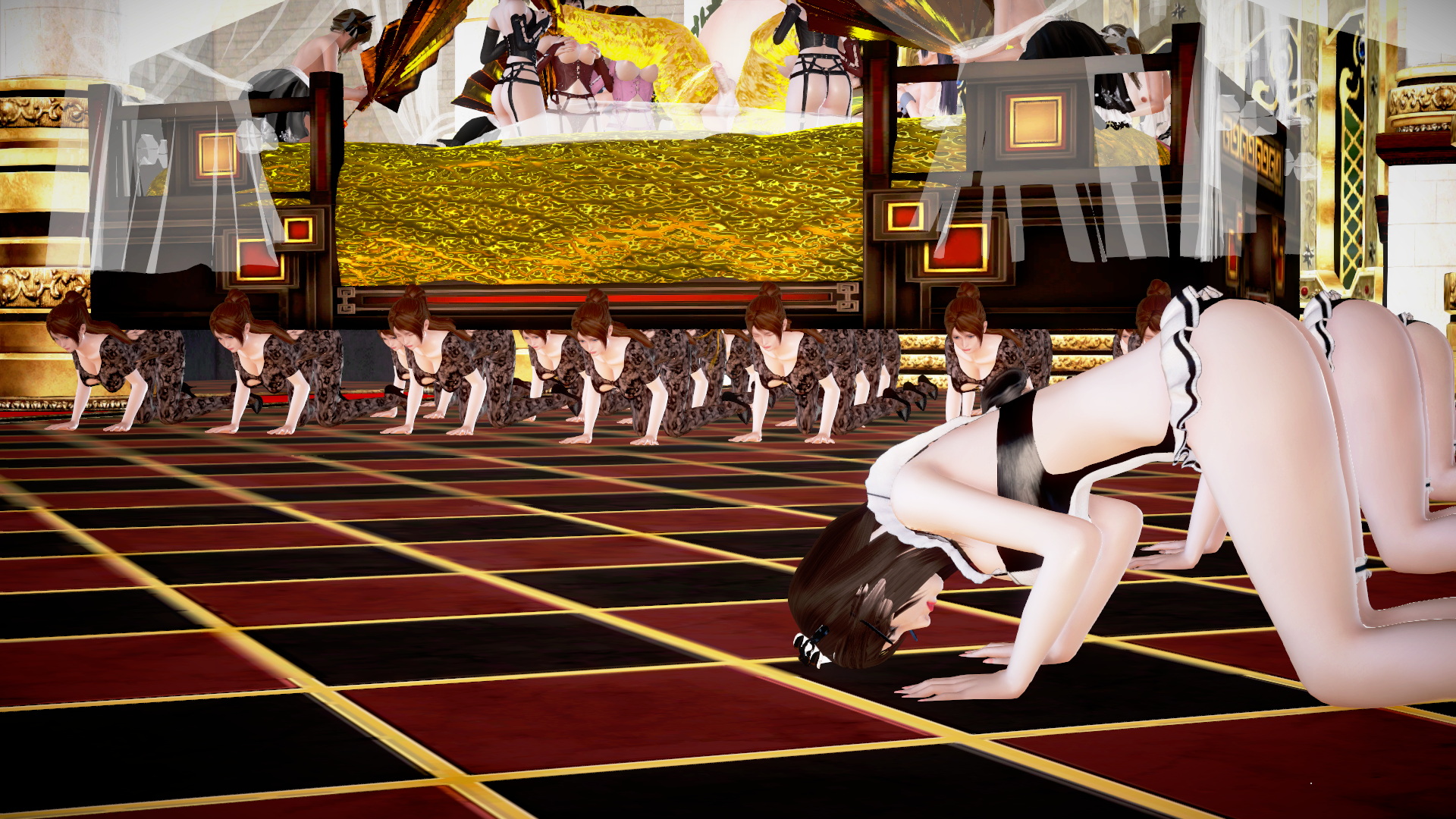 在这一大群美若天仙、巨乳翘臀的宫女环绕之下,至高无上的女皇陛下慵懒惬意的躺着,享受着宫女们无微不至、虔诚恭顺的伺候和服侍!至高无上的女皇陛下随心所欲的恩赐着圣水御尿,不断淋在四周跪着的宫女们身上!宫女们没有丝毫的躲闪,没有片刻的犹豫,全都奴颜婢膝的承接着天赐甘露的洗礼!看呐!原来至高无上的女皇陛下的万金龙体,是躺在宫女们用肉体搭建的宝床上,而宝床则位于金黄色的巨大圆形床垫上!更惊人的景象还在床垫下面,居然是一群活生生的女奴跪爬着驮起这座奢华无比的龙床!至高无上的女皇陛下恩赐的圣物,也就是黄金圣屎和圣水御尿结合在一起的圣浆,已经流满了整个龙床,流到了下面的龙毯上,驮床的女奴艰难的在屎尿圣浆里爬行,两侧的宫女在磕头请安的同时,也不断将脸埋进圣浆中!就在至高无上的女皇陛下恩赐圣物的同时,宫女们的喂膳服务也同时进行着。没错!至高无上的女皇陛下就是这样用膳的!让宫女咀嚼成流食嘴对嘴喂!这样至高无上的女皇陛下就避免了自己张嘴,自己咀嚼的辛劳了!就连喂膳的宫女居然都是被称作奉膳宫女的其她宫女,用黄金餐具喂进嘴里的,这是多么奢华的排场啊!不止如此呢!竟然还安排了大量女奴,在旁边跪爬着,做御膳的肉托盘,做餐具的肉容器,甚至做使用完之后,沾满残羹剩饭餐具的肉弃碟!就在宫女们如此周到细致、无死角全面覆盖的伺候服侍之下,至高无上的女皇陛下的天尊玉肚,自然是越养越大,万金龙体也是越养越肥!巨大高耸的天尊玉肚,彰显出至高无上的女皇陛下的无比尊贵!丰满肥美的万金龙体,展现了至高无上的女皇陛下的无极享受!至高无上的女皇陛下万岁万岁万万岁!