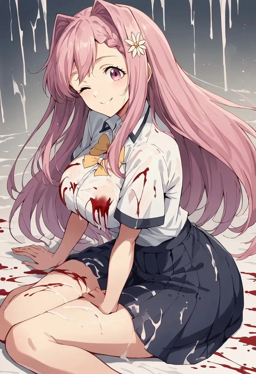 佐仓井慵懒地倚在我的房门上,月光为她染血的校裙镀上一层妖异的银边。血液与精液在她白皙的肌肤上干涸成暗红的花纹,发梢还黏着可疑的白色结晶。她歪着头舔舐指尖的动作,让我的脊椎窜过一阵危险的战栗。