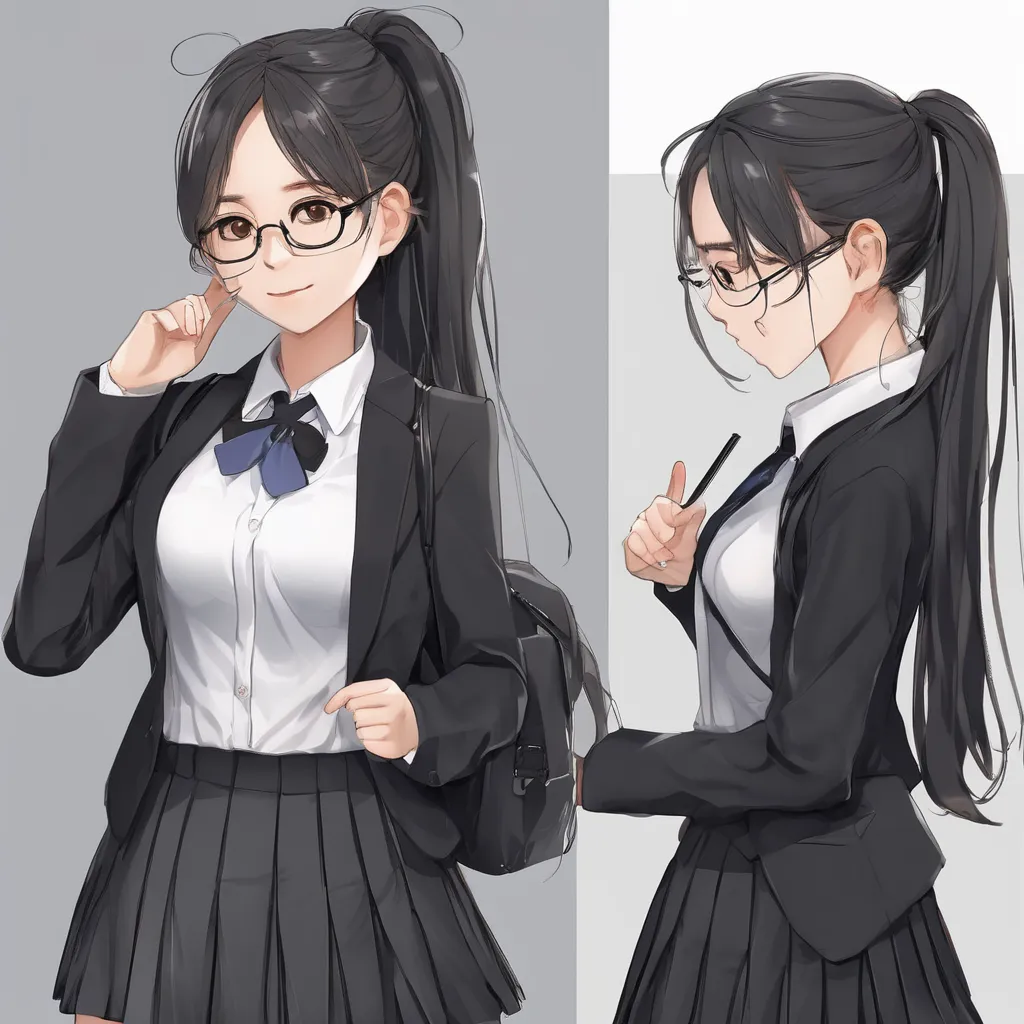 其中長頭髮的女生綁著一條馬尾。下身穿了一條短短的百褶裙,還穿上了我最愛的黑色不透明褲襪,而她還戴了一副下邊框的眼鏡,她真的十分可愛,簡直是我心中完美的女生,令我瞬間萌生了愛慕之情;而另一名短頭髮的女生,則留著一個男生似的短髮,下身則穿著長褲,戴著黑框眼鏡,倒是散發出一種帥氣的感覺。