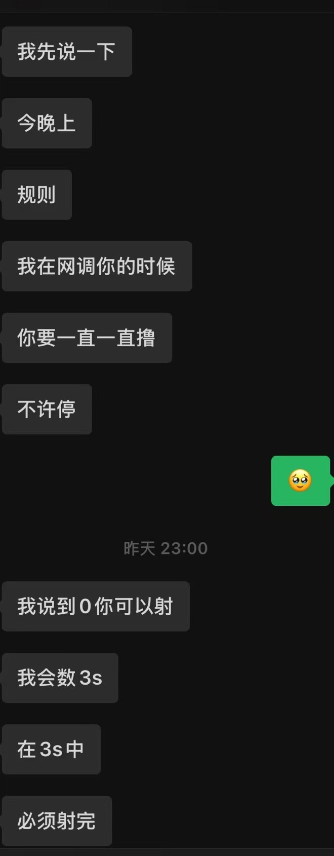 738969618:↑结局是3秒没射出来还被罚了300块钱🙂↕️