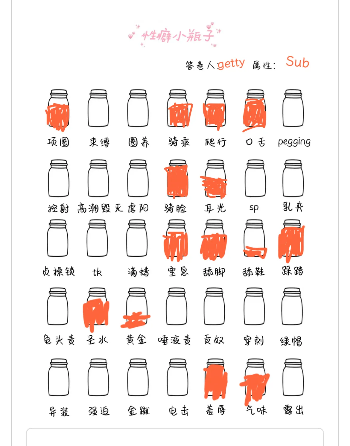 性癖小瓶子,看看大家的答卷(25/7/1主楼更新统计数据)