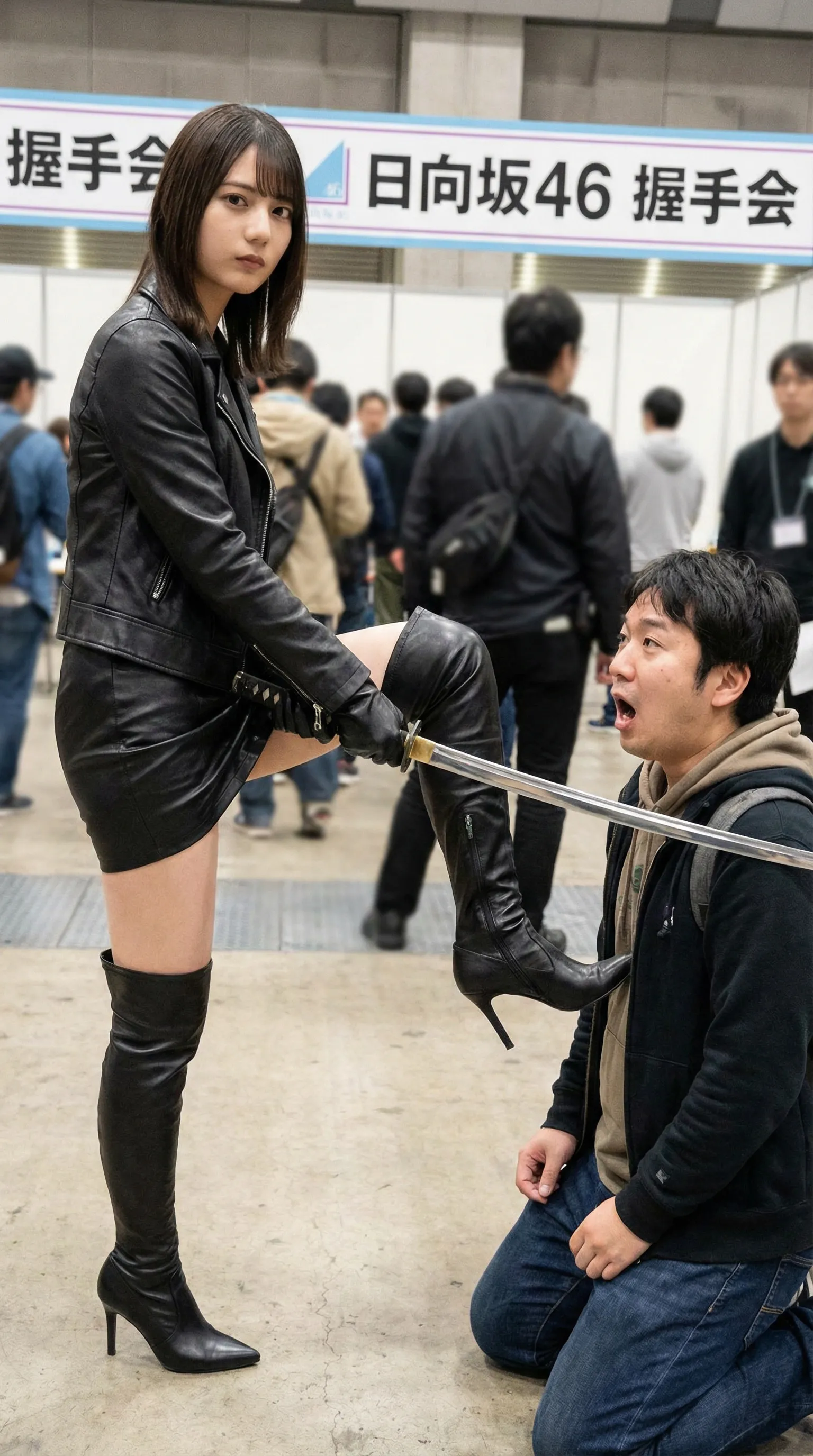 她们再也闻不到那些令人不适的体味,厚实的靴筒隔绝了一切不必要的接触。她们的眼神也变了,不再需要全程维持那种空洞的、程式化的可爱。当又一个粉丝紧张地走到面前,在指定位置站好时,她们的眼神可以变得专注、冷漠,甚至带上一丝不易察觉的怜悯。