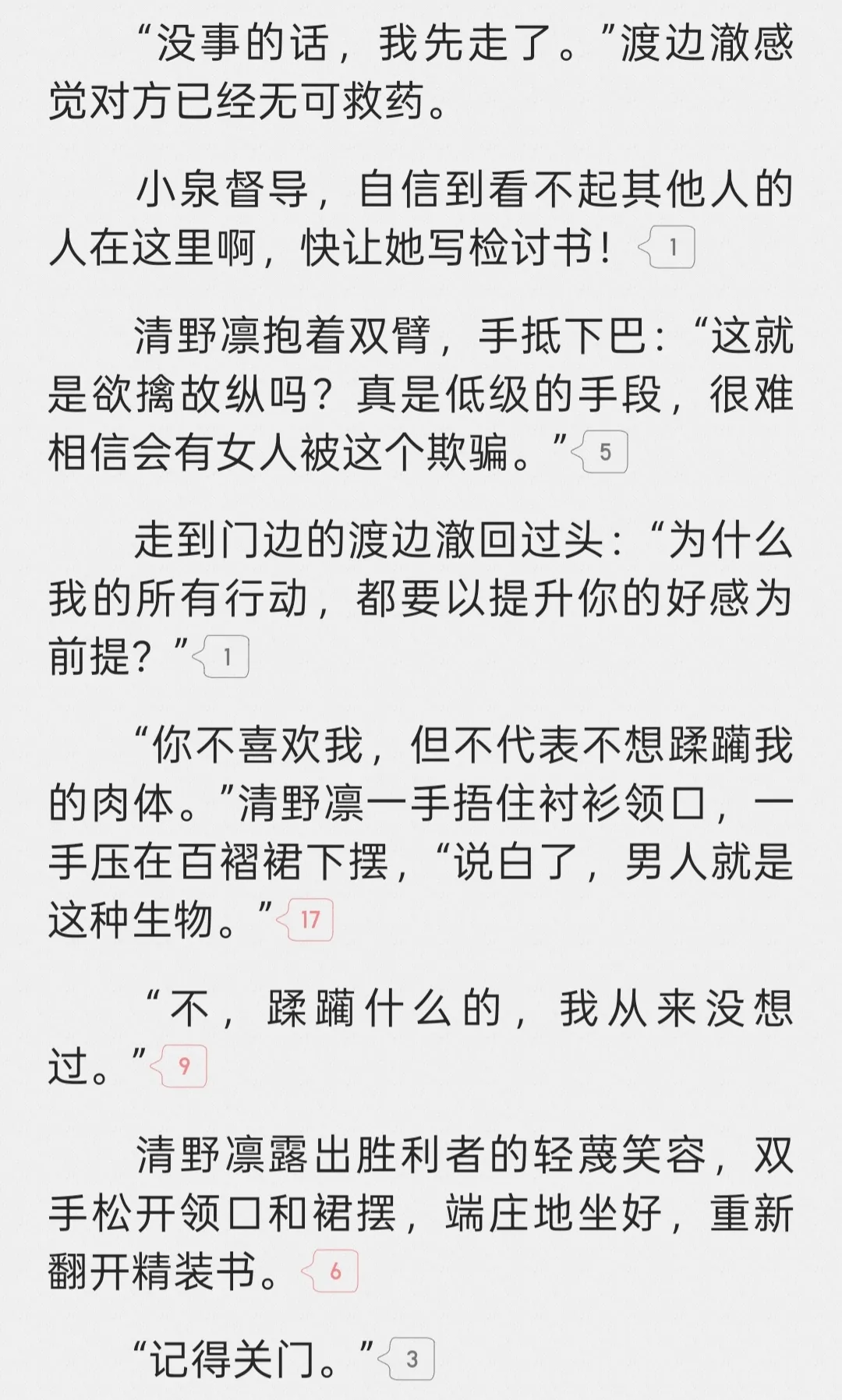 顺便说下这篇网络小说虽然有一些我不喜欢的桥段(比如多女主),但清野凛是完全戳中我的赛博xp了来着(x)