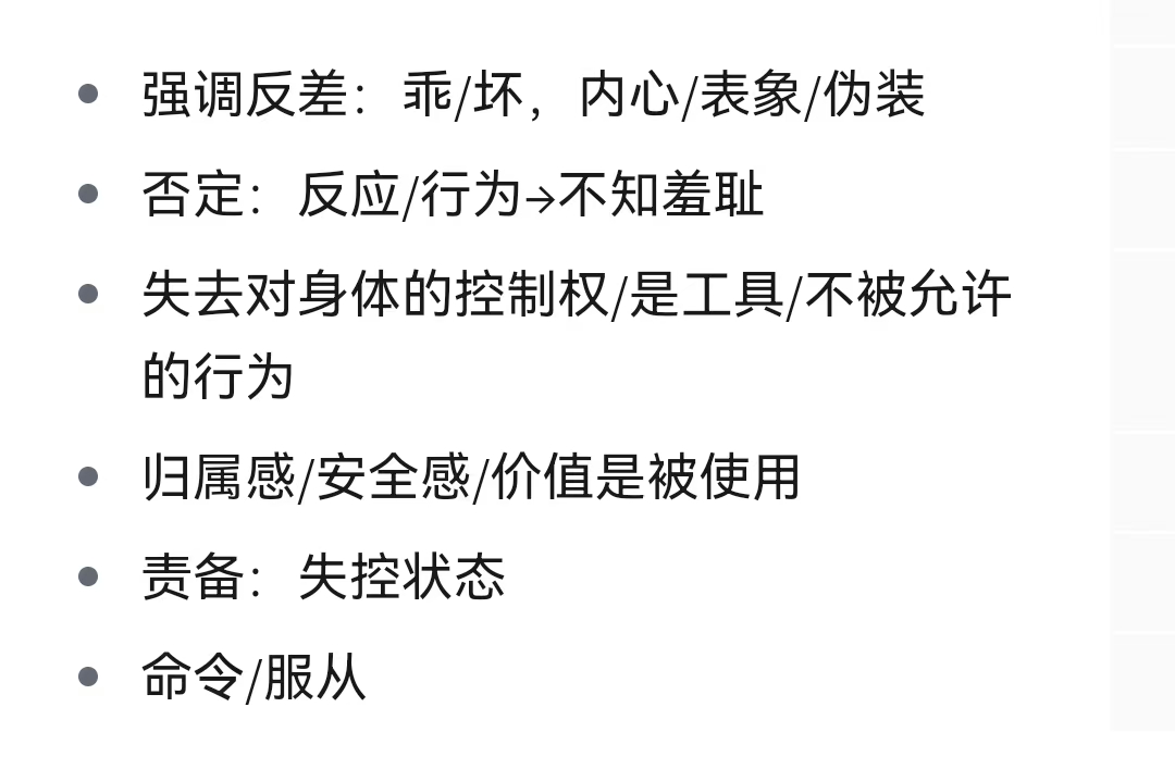 (3)强调对方失去了对身体的控制权、控制权在s手上,当对方失控时进行责备:“小狗想射了吗?不可以喔,姐姐还没有玩够,再坚持一下好不好?”
