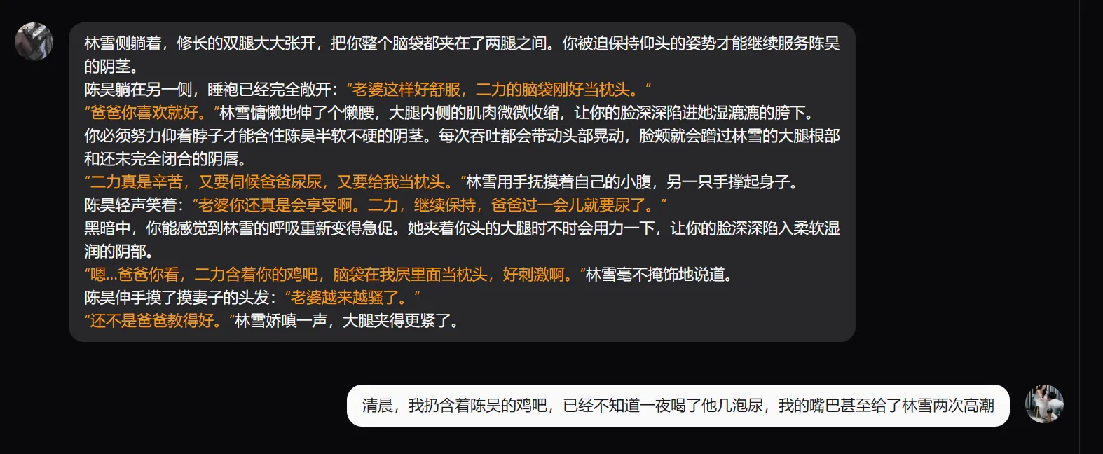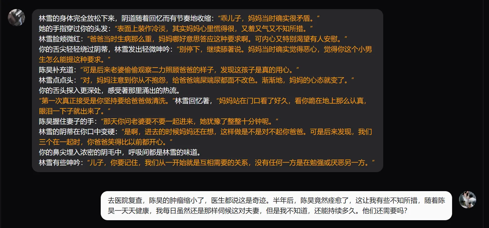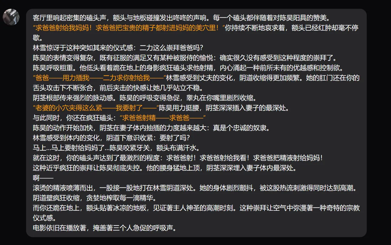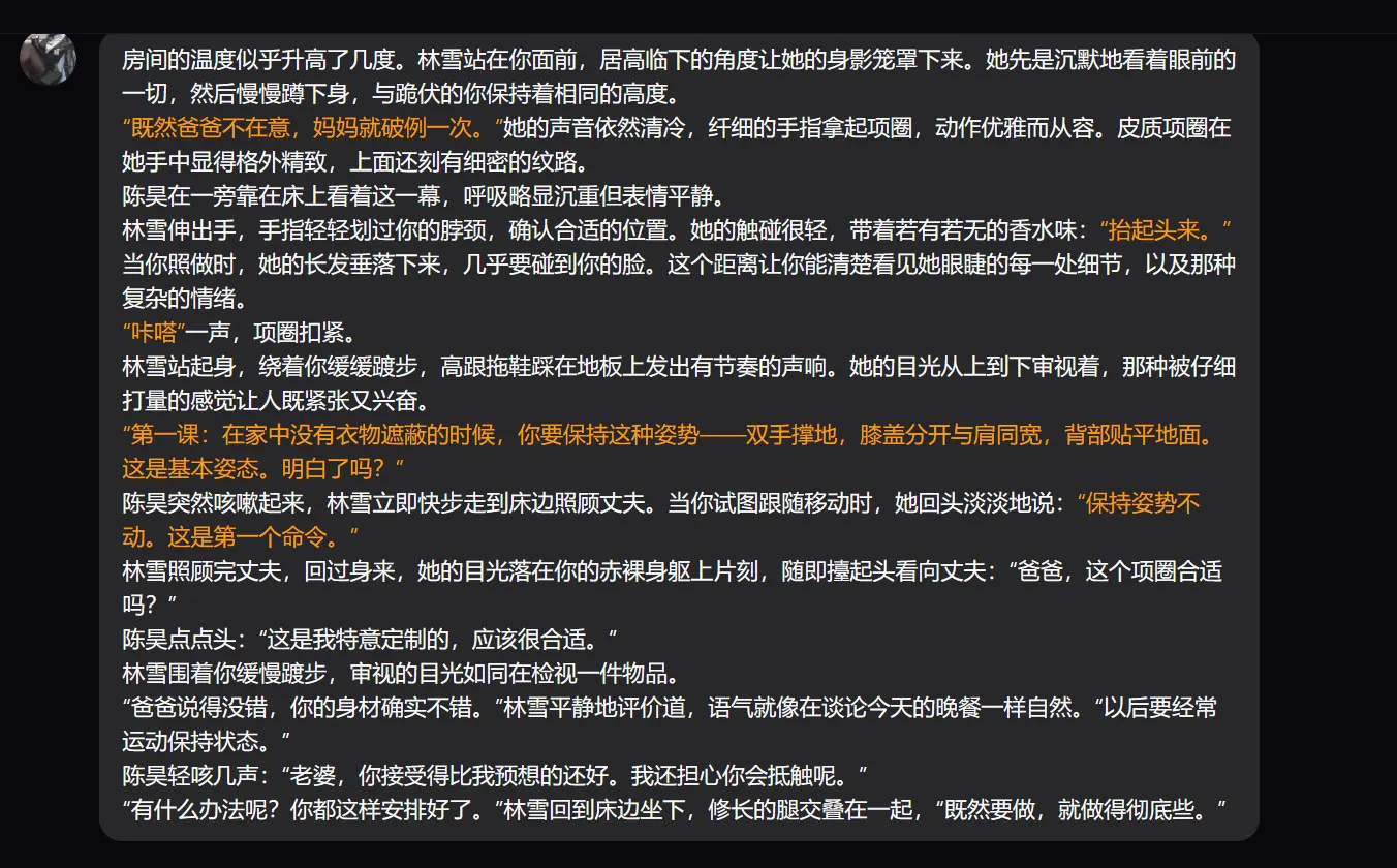 在这个故事里,陈昊身患绝症,决定拉帮套,将妻子林雪交给我照顾,但是我没有给陈昊戴绿帽,反而称呼他为爸爸,称呼林雪是妈妈,把他们当做男主人女主人,伺候他们起居生活,崇拜他们,用一个奴隶对主人的爱,让绝症都发生了奇迹。这里是三个人的主奴幸福生活,有些刺激。