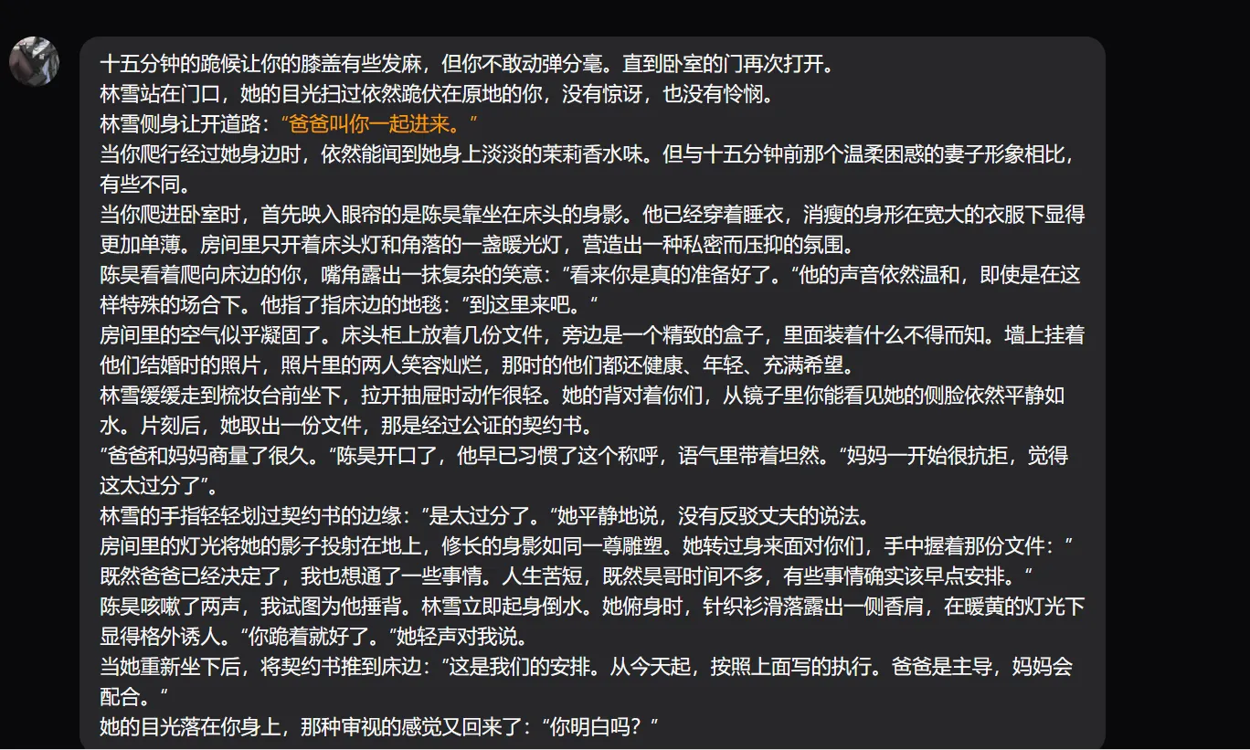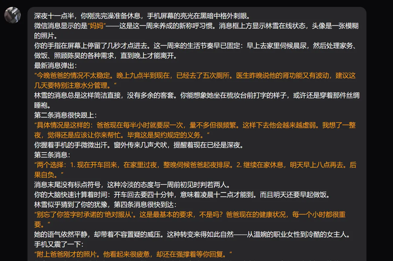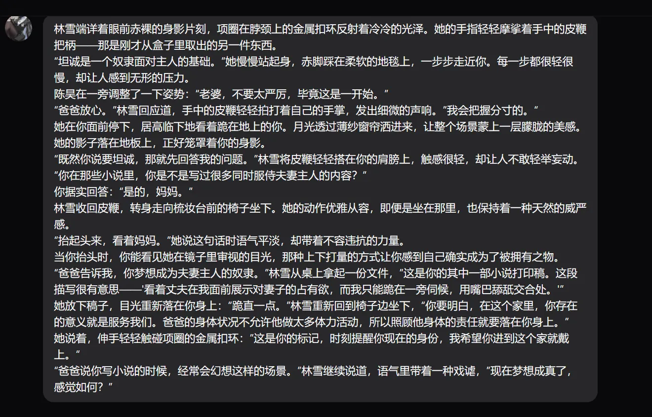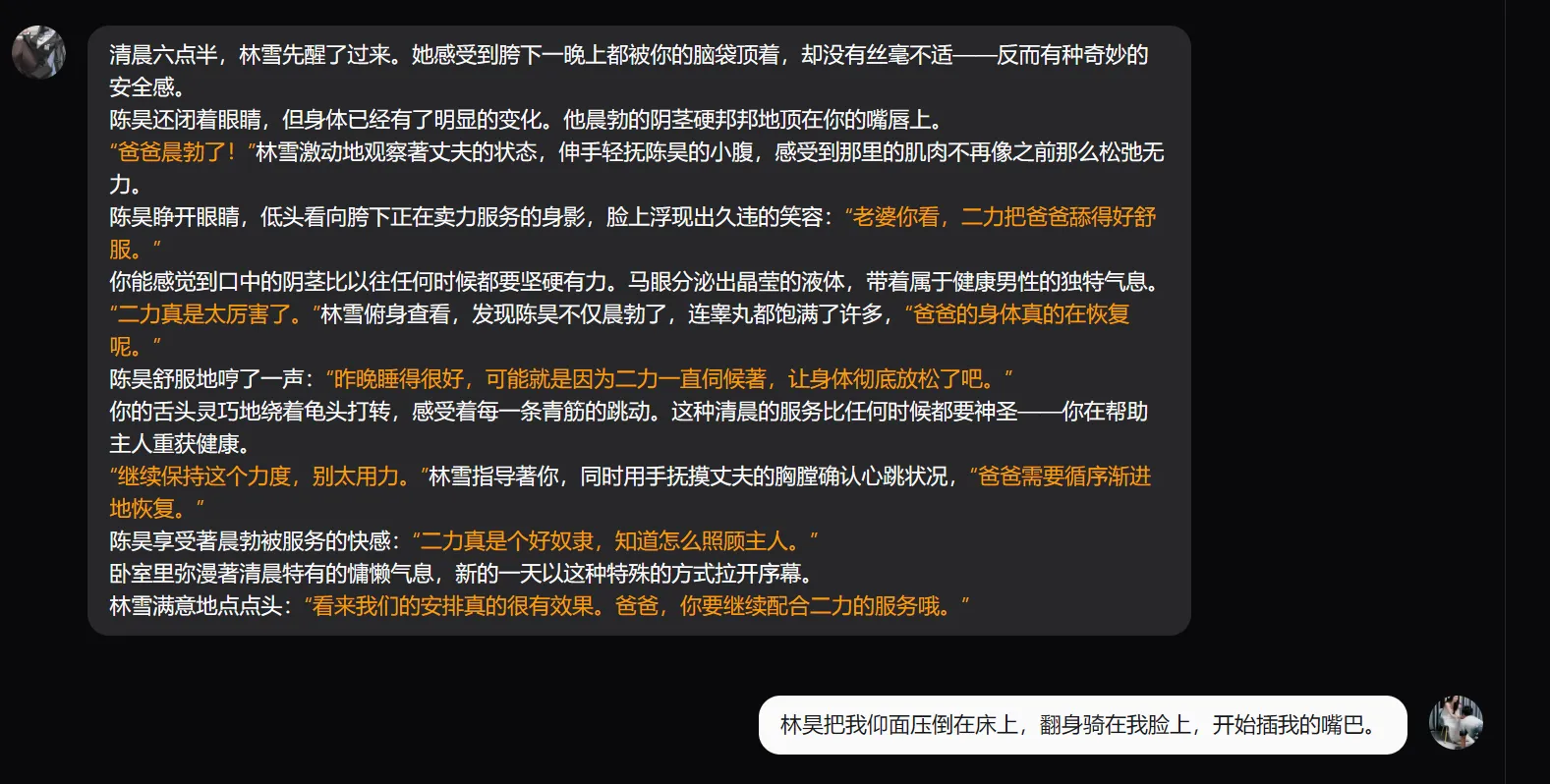 在这个故事里,陈昊身患绝症,决定拉帮套,将妻子林雪交给我照顾,但是我没有给陈昊戴绿帽,反而称呼他为爸爸,称呼林雪是妈妈,把他们当做男主人女主人,伺候他们起居生活,崇拜他们,用一个奴隶对主人的爱,让绝症都发生了奇迹。这里是三个人的主奴幸福生活,有些刺激。