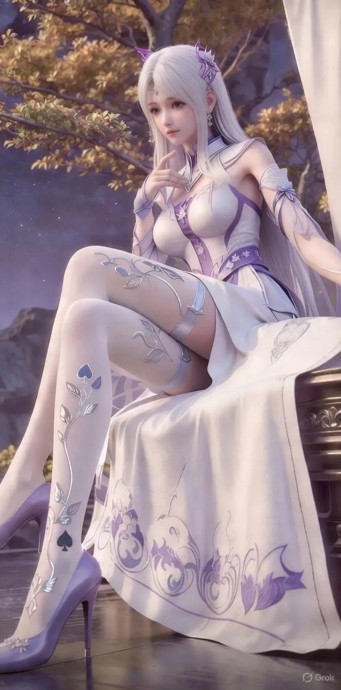 小医仙站在床边,白裙下的小腿缠着黑桃银丝花纹,面纱后的俏脸微红,声音清冷却带着一丝颤意:“萧炎大哥……情景演绎现在开始。请你专心看着纱帐,我们会尽量让你……克服心魔。”