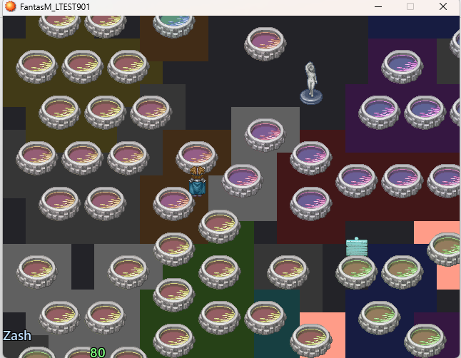 1带有开关条件,满足条件才显示为可交互的宝箱。每个宝箱对应两个Common Event调用,一个是带文字版,一个是 文字無し