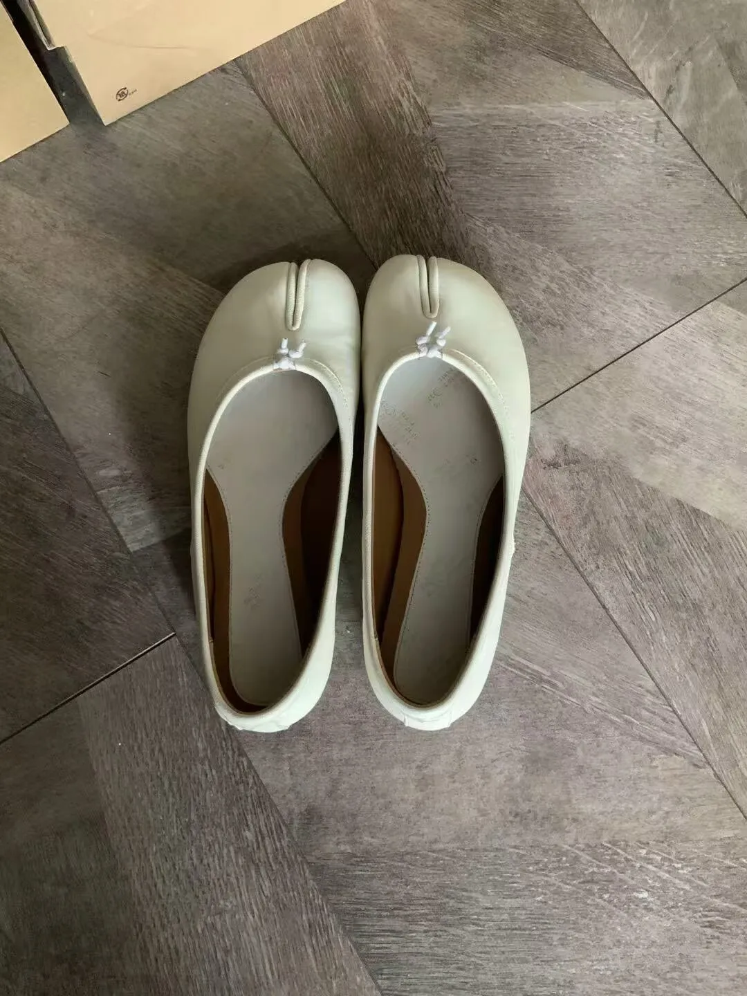 镜头晃了一下,对准了鞋柜角落里的一双造型奇特的鞋子。那是一双分趾设计的白色平底,鞋头从中间分开,酷似动物的蹄子,这种鞋通常被戏称为“猪蹄鞋”。