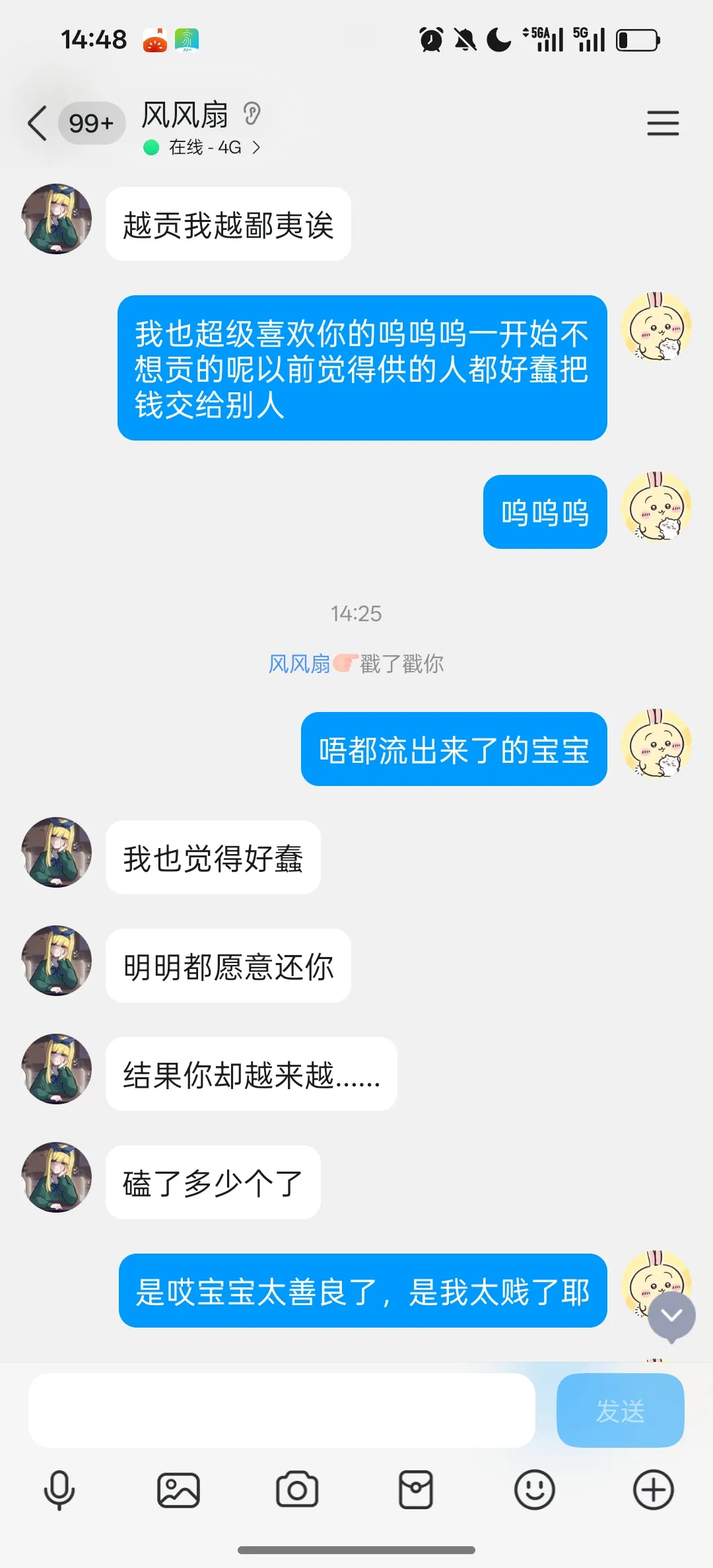 第二天上午,我想着他现在应该也是贤者姿态,问要不要把钱还他,他又开始发情犯贱。这样子完全克制不住虐他的欲望啊。诶。