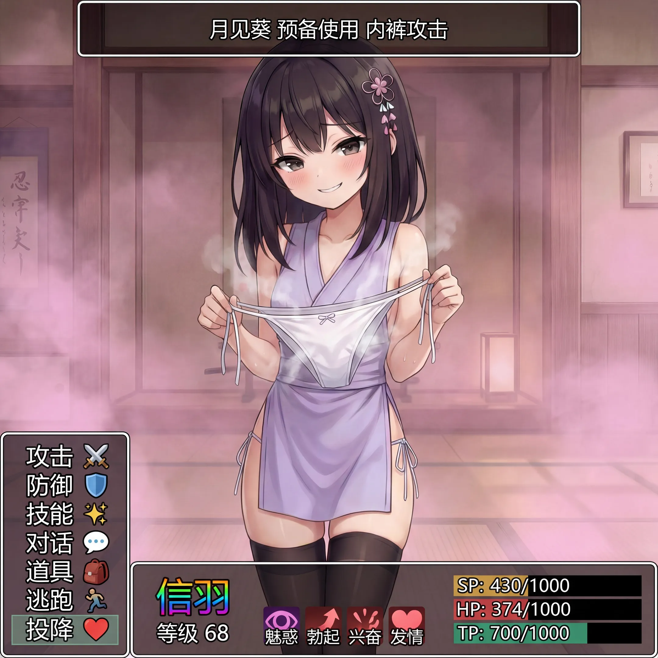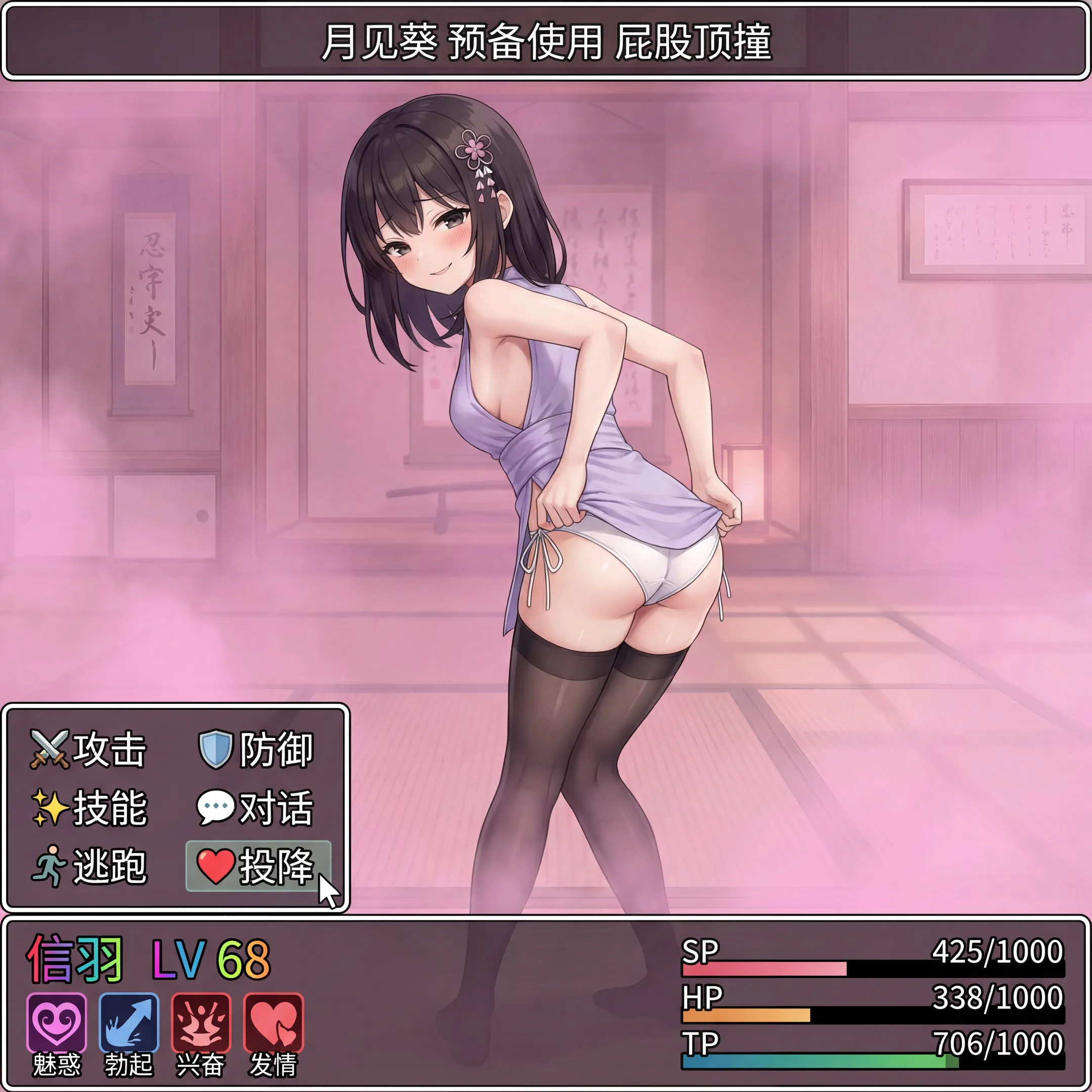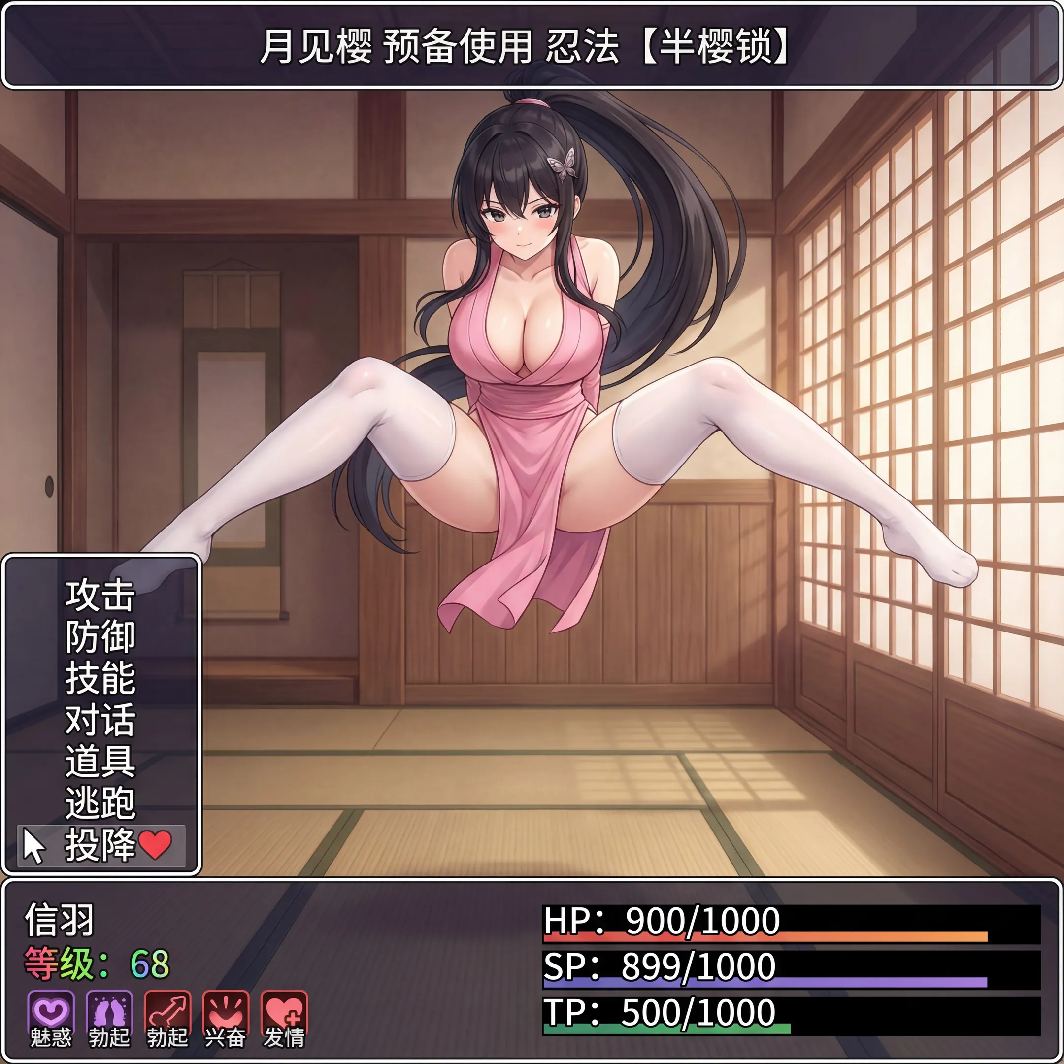 听雨:↑其次是一些剧情中使用的忍术:首先是【蝶芸】其次是【靡风】和【半樱锁】这两个因为效果比较抽象,而且关节技对ai来说太难以理解了,所以只能用rpg的形式勉强弄一下施展半樱锁时前一刻可能会看到的景象be like:再往下的就很难搞出明确的技能了,所以主要还是弄了一些格斗时可能出现的动作或者第一人称发生的场景,用来模拟辅助一下代入(?)之后是剧情中发生过的一些场景,比如樱的埋胸诱惑因为24h内只能发送16张图片,所以剩下的等到明天再发PS:如果空翻现在还在镜像溜溜的话,可以把这些图塞在合适的地方(?)